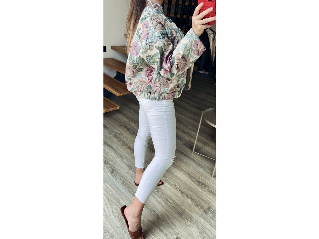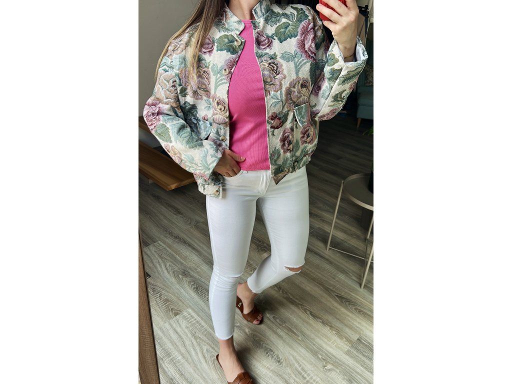 Nádherná, kvalitně zpracovaná bundička ve stylu ,,bomber,,. To kousek do Vašeho šatníku. Zapínání na knoflíky, spodní část do gumy, pevný materiál, krásně drží tvar.