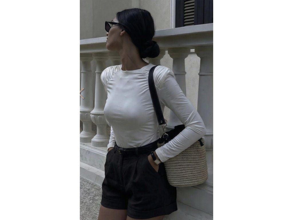 Elastická, dokonale padnoucí halenka s řasením na ramenou. Ramenní vycpávky, které tvoří hezkou siluetu postavy.