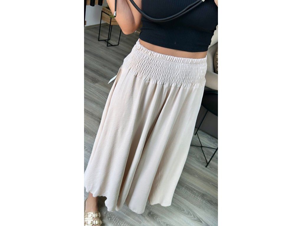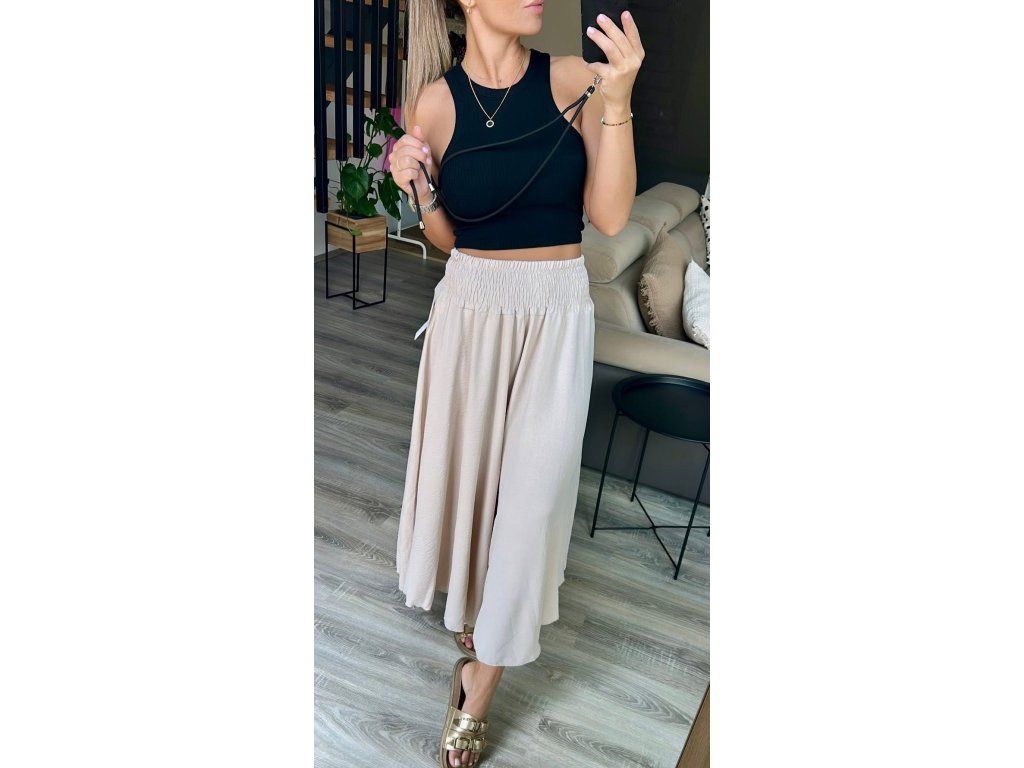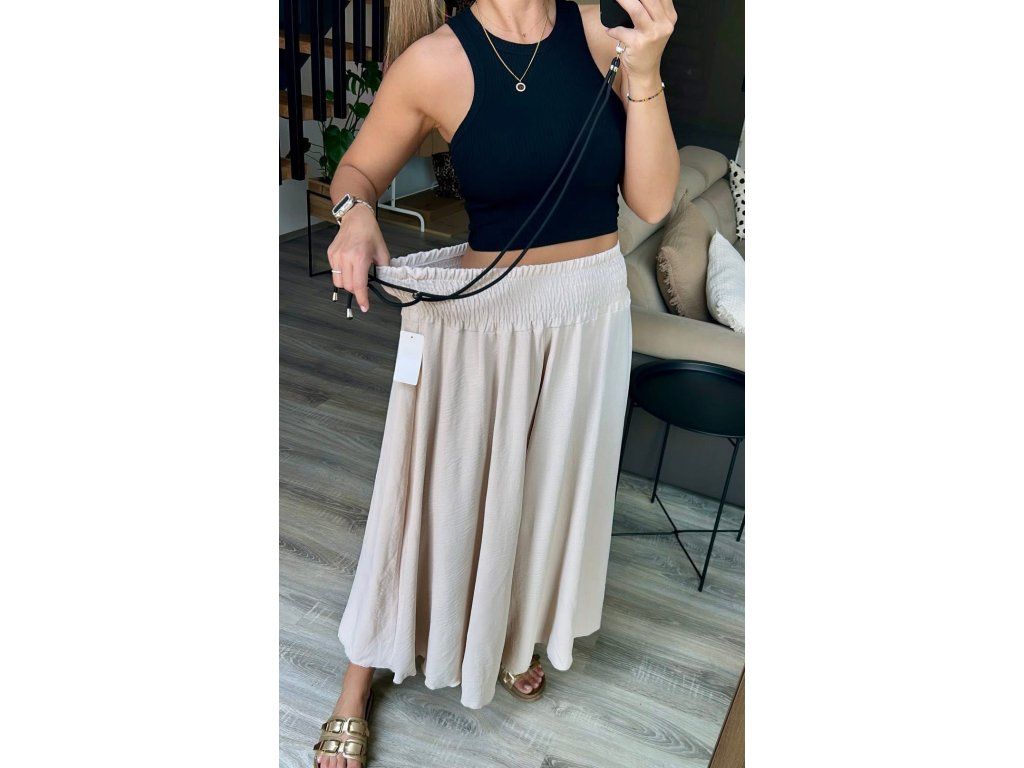 Opět v nabídce tyto extra široké kalhoty, které působí jako sukně. Materiál je lehky, vzdušný, nemačkavý. V pase široká hodně pružná guma, nikde se nezařezávají. Barvičky vybírejte na fotce, případně pro upřesněné napište do poznámky, o jakou přesně máte zájem.