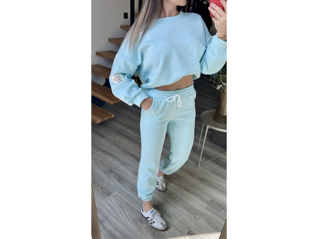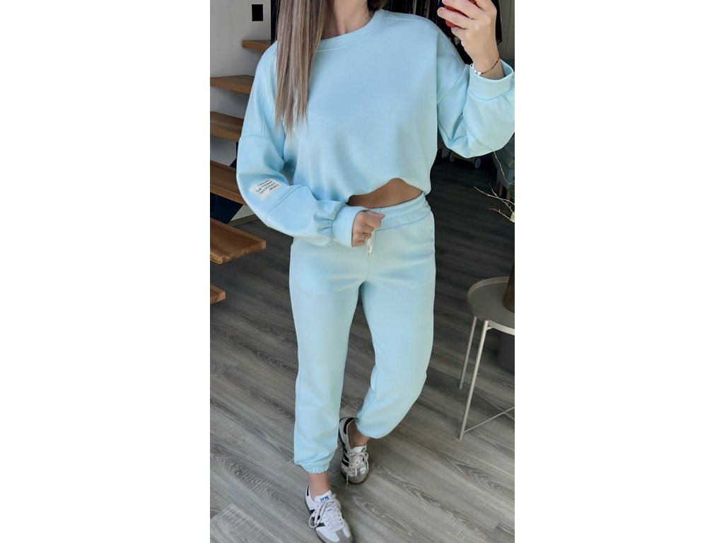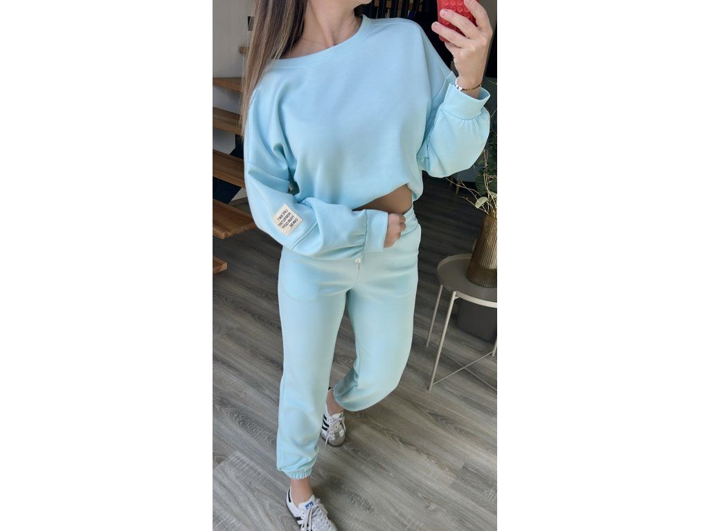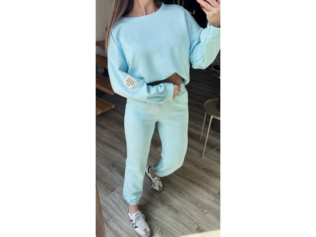 Hledáte pohodlnou, ale přitom dobře vypadající ,,teplákovou,,? Tady je! Komplet se skládá z volnější oversize mikiny a tepláků, které jsou v pase do gumy. Nohavice také do gumy, lze si je hezky vyhrnout a drží. Na rukávu mikiny je decentní nášivka. Celý komplet je z ,,máslového,, nemačkavého a splývavého materiálu, který si zamilujete.