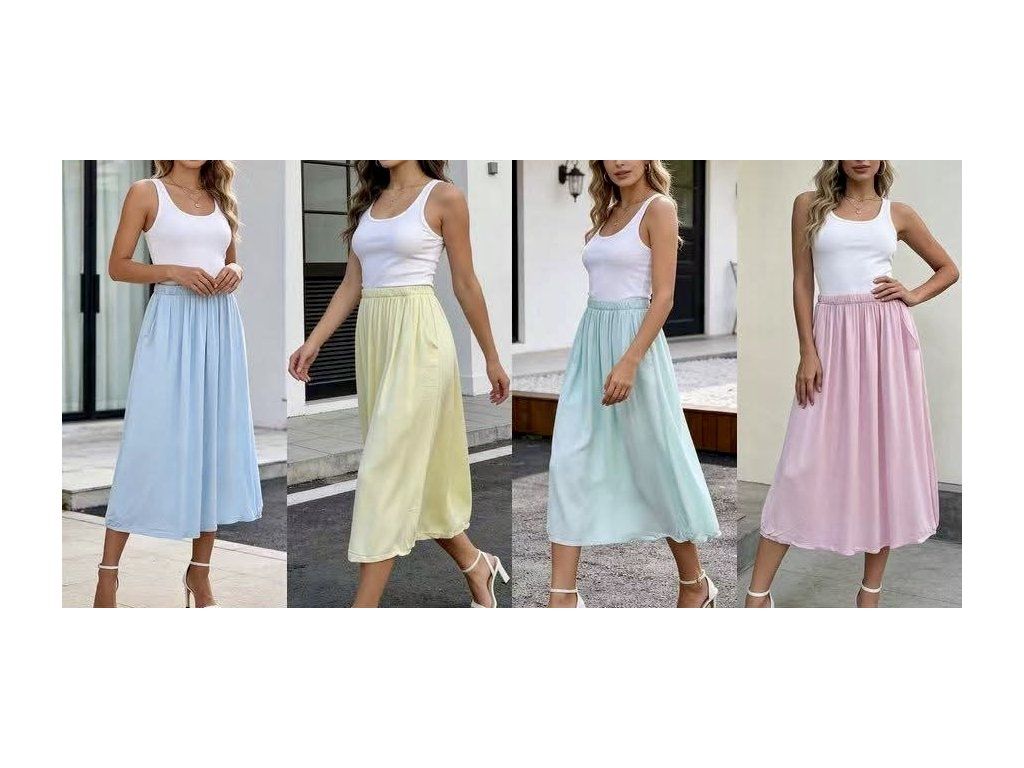 100% viskózová sukně v pase do gumy s kapsami. Dokonalý jarní/letní kousek. Sukně je z jemného lehkého materiálu a sedí do velikosti XL.