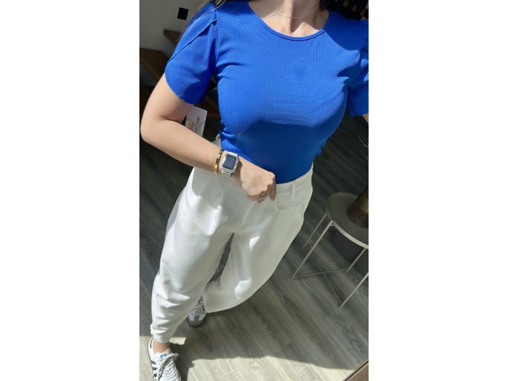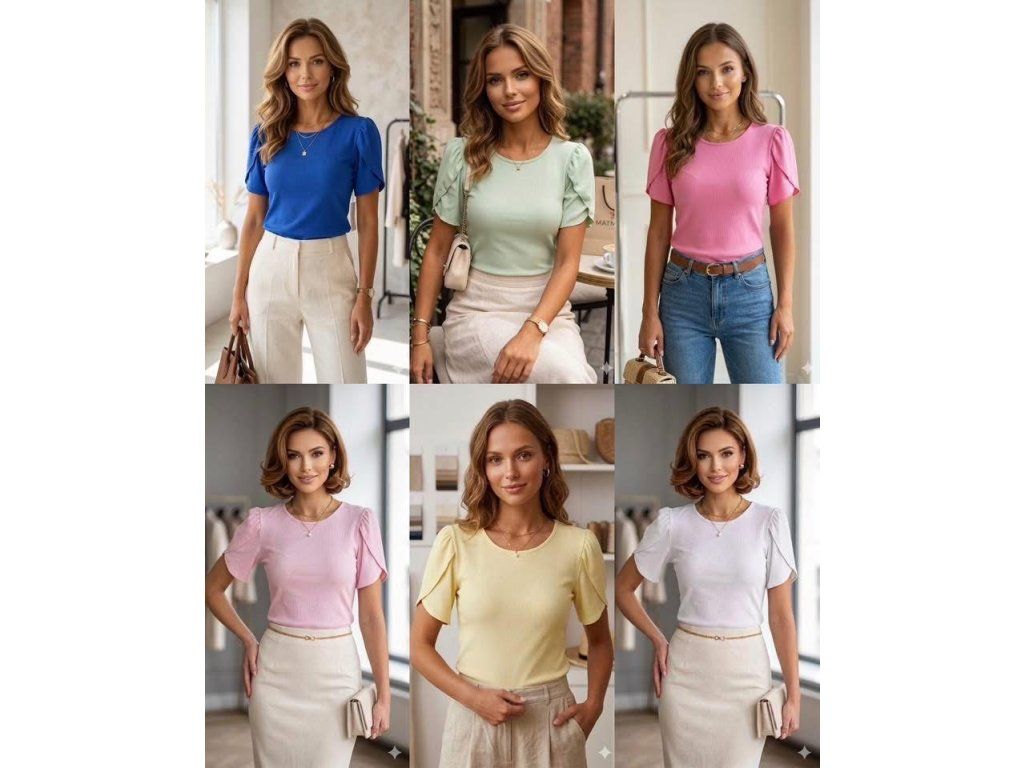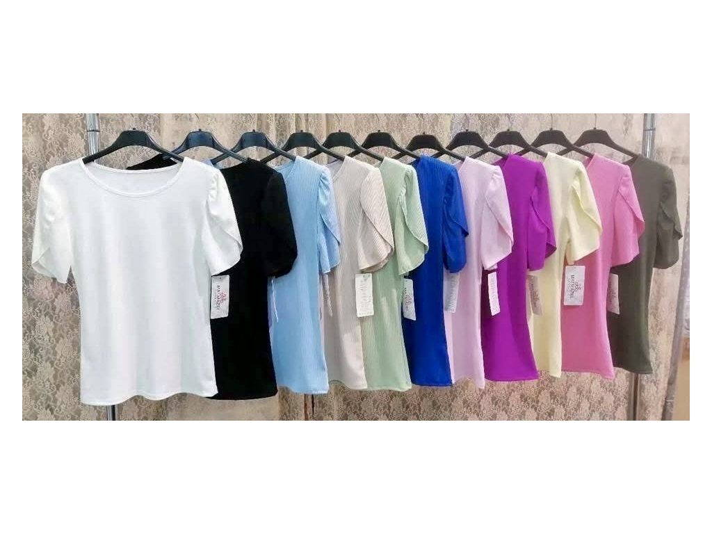 Elastické žebrované basic tričko s lehce volánkovými rukávy. Velmi oblíbený kousek v krásných barvách.