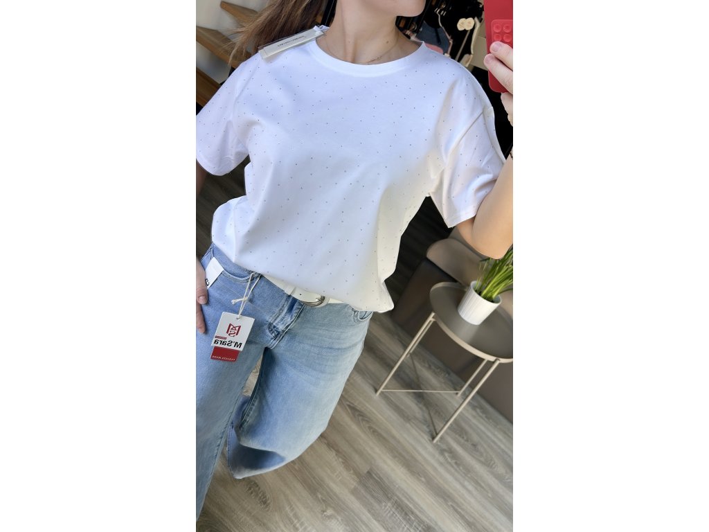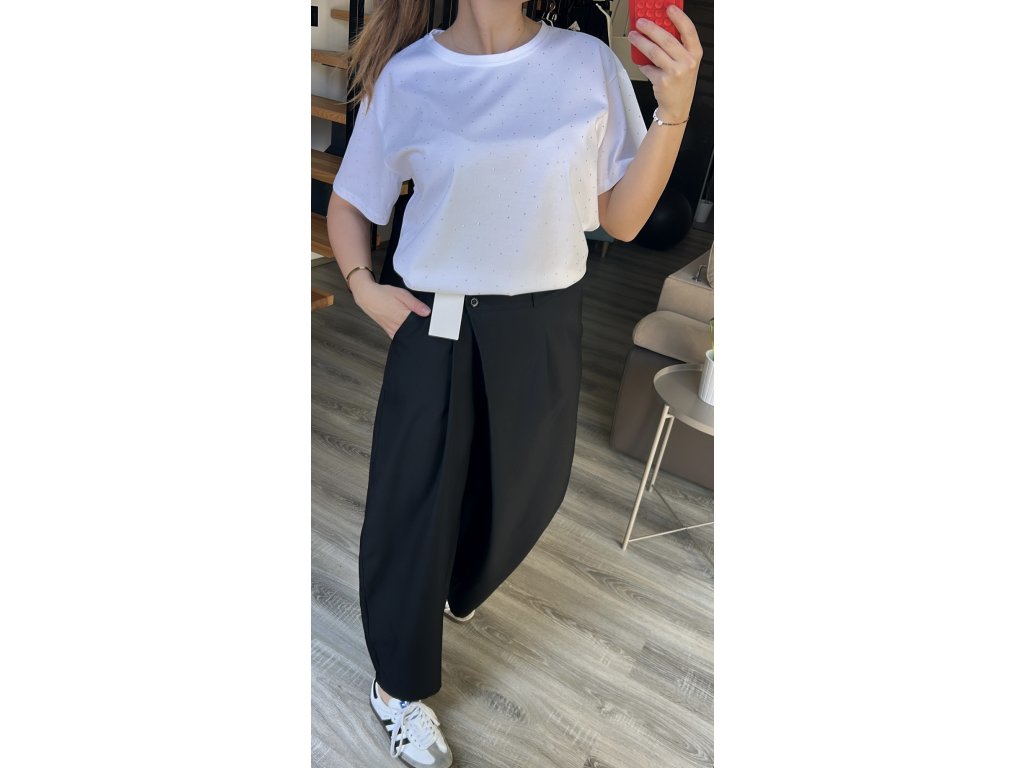 Bavlněné tričko je základ šatníku a tohle s kamínky je krásné. Toto tričko je z kvalitní vysokogramážní bavlny v oversize střihu, proto vypadá dobře i jen tak k legínám, riflím, ale i kalhotům. Díky jemným kamínkům na přední straně, které se krásně třpytí, dodá i obyčejnému outfitu něco navíc.
